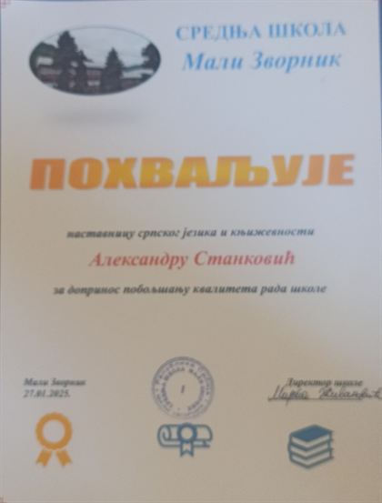 Школска слава у Средњој школи Мали Зворник, обележена је приредбом и свечаним ручком. Током прославе, подељене су дипломе ученицима и професорима који су дали допринос побољшању квалитета рада школе.